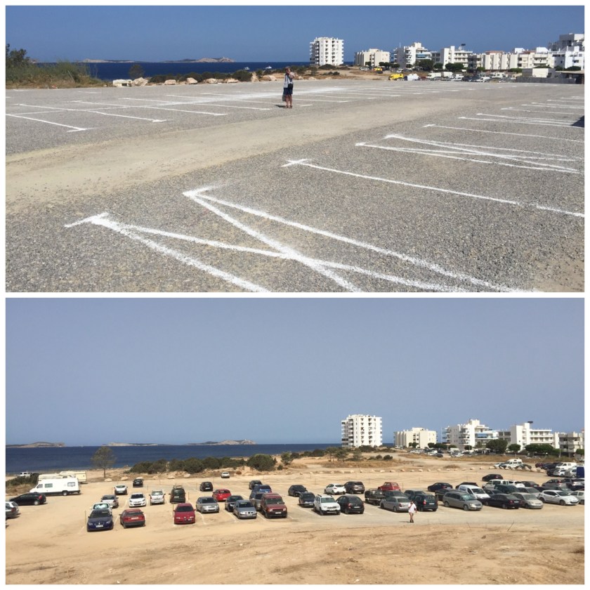 As the island experiences more traffic congestion than ever before San Antonio Town Hall has been proactive in opening a large new parking area for the town on the Ses Variades waste ground adjacent to the sea and the sunset strip.